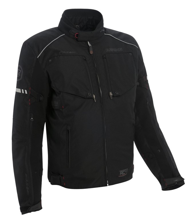 Membrana amovivel impermeável e respirante, Forro térmico amovível thermo alu micro polar, três forros para diferentes estações, Protecções de ombros, cotovelos e dorsal certificadas pela CE, material reflector. Regular Fit, pressão ajustável, protecção de cotovelos regulável em altura, bolso interior, sistema de ventilação, zip de conexão entre blusão e calças, sistema anti-choque nas mangas